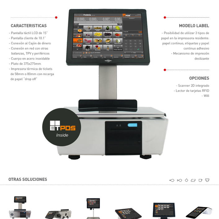 BM5 es una balanza que combina la función de pesaje al sistema de punto de venta (TPV) ETPOS.