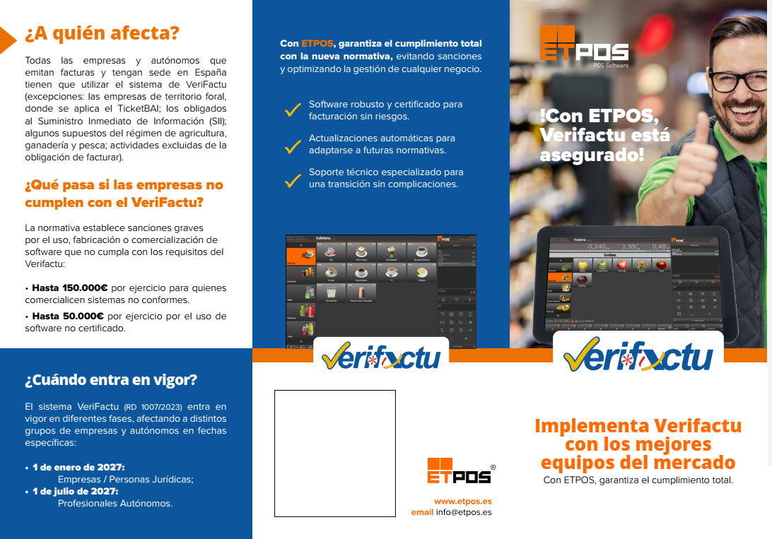 Distribuimos software ETPOS homologado que optimiza la gestión de cobro y el control de inventario con la homologacion para Verifactu.